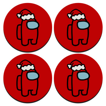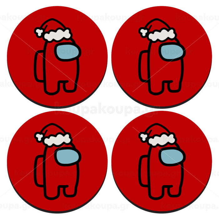 Among US Santa, ΣΕΤ 4 Σουβέρ ξύλινα στρογγυλά (9cm)