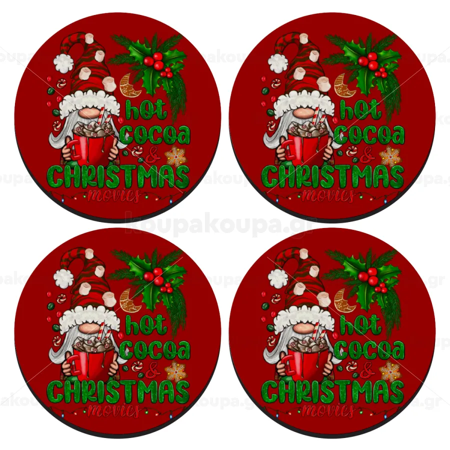 Hot cocoa and Christmas movies, ΣΕΤ 4 Σουβέρ ξύλινα στρογγυλά (9cm)