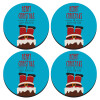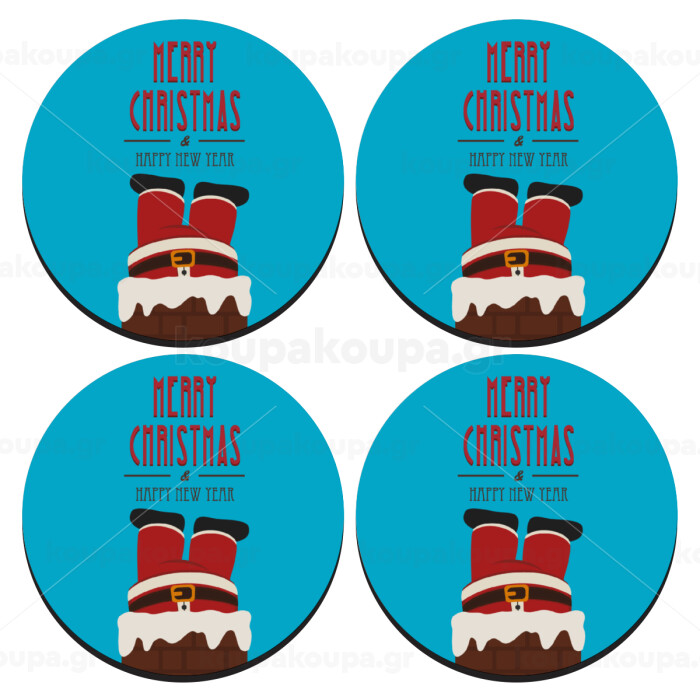 Merry christmas chimney, ΣΕΤ 4 Σουβέρ ξύλινα στρογγυλά (9cm)