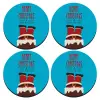Merry christmas chimney, ΣΕΤ 4 Σουβέρ ξύλινα στρογγυλά (9cm)