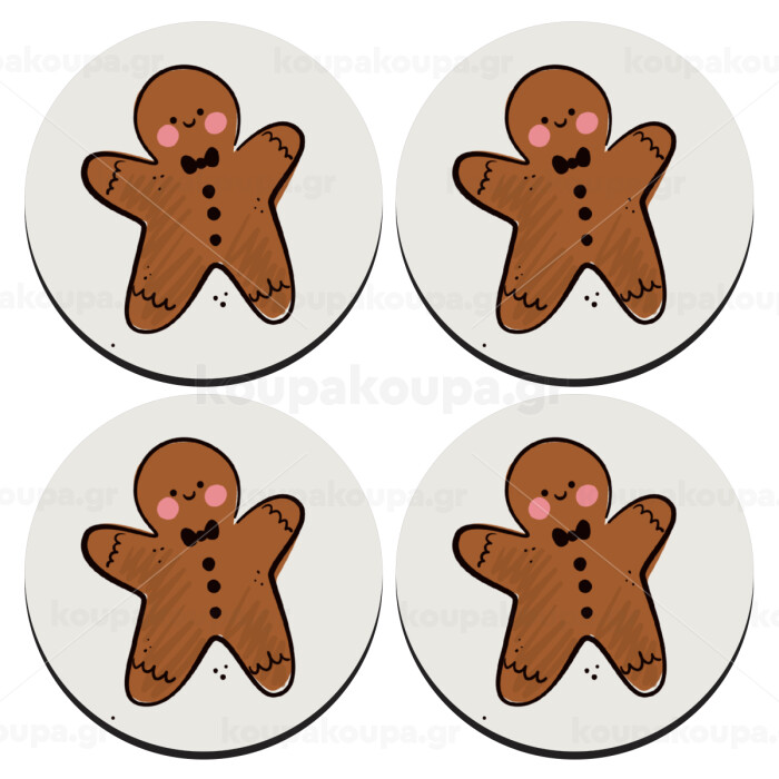 mr gingerbread, ΣΕΤ 4 Σουβέρ ξύλινα στρογγυλά (9cm)