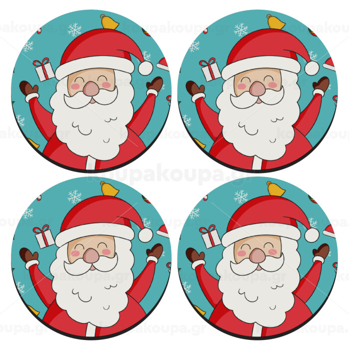 Santa Claus gifts, ΣΕΤ 4 Σουβέρ ξύλινα στρογγυλά (9cm)