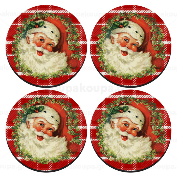 Santa Claus, ΣΕΤ 4 Σουβέρ ξύλινα στρογγυλά (9cm)