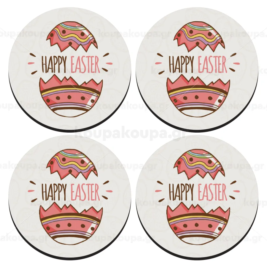 Happy easter egg, ΣΕΤ 4 Σουβέρ ξύλινα στρογγυλά (9cm)