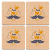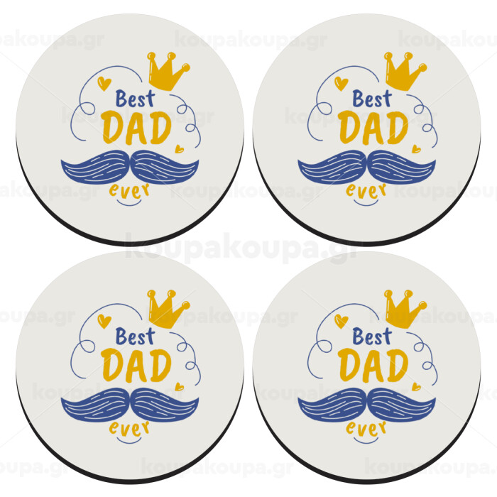 Best dad ever ο Βασιλιάς, ΣΕΤ 4 Σουβέρ ξύλινα στρογγυλά (9cm)