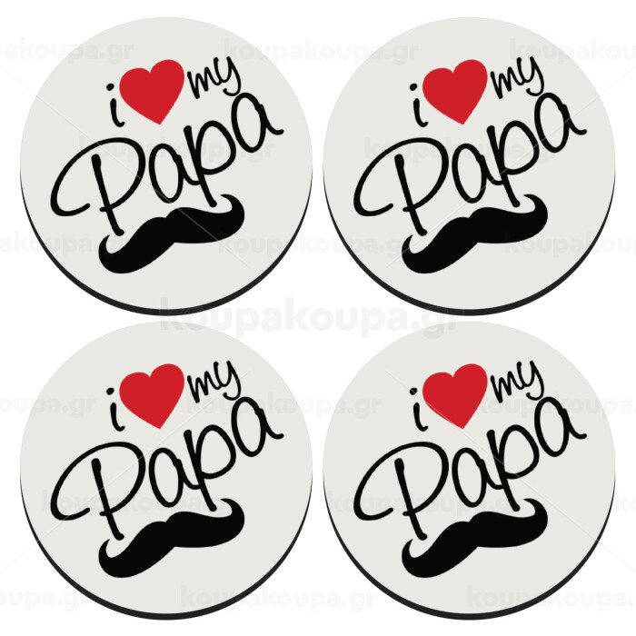 I Love my papa, ΣΕΤ 4 Σουβέρ ξύλινα στρογγυλά (9cm)