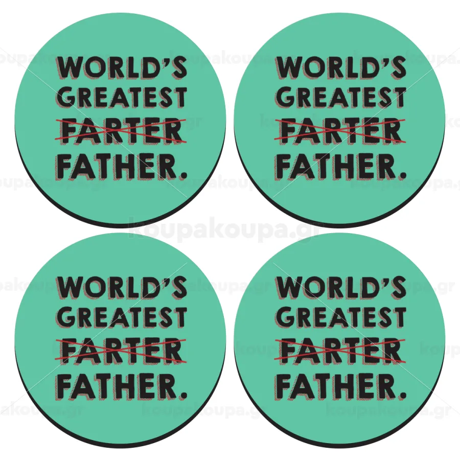 World's greatest farter, ΣΕΤ 4 Σουβέρ ξύλινα στρογγυλά (9cm)
