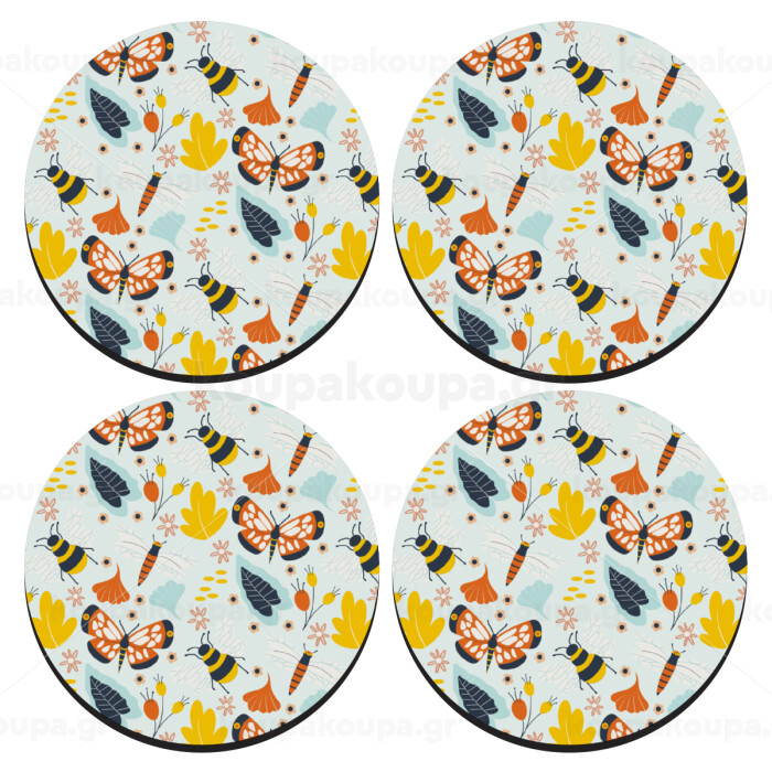 Πεταλούδες, ΣΕΤ 4 Σουβέρ ξύλινα στρογγυλά (9cm)