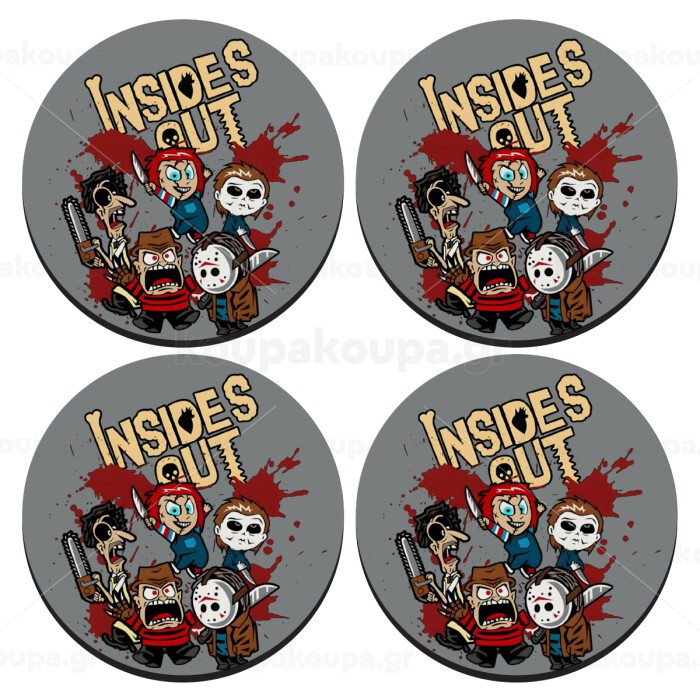 Halloween Inside out, ΣΕΤ 4 Σουβέρ ξύλινα στρογγυλά (9cm)