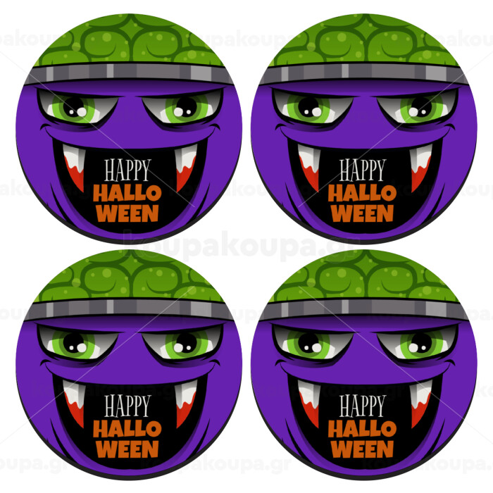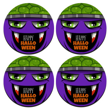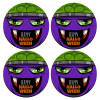 Halloween trick or treat Monster, ΣΕΤ 4 Σουβέρ ξύλινα στρογγυλά (9cm)