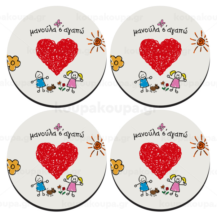 Μανούλα σ'αγαπώ!, ΣΕΤ 4 Σουβέρ ξύλινα στρογγυλά (9cm)