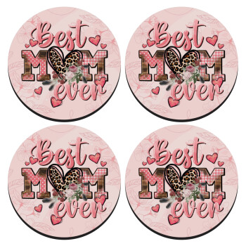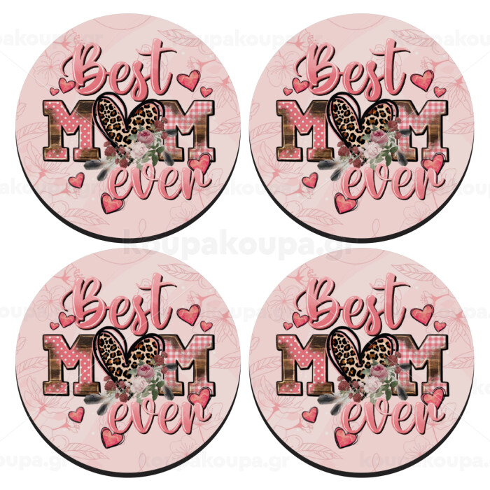Best mom ever Mother's Day, ΣΕΤ 4 Σουβέρ ξύλινα στρογγυλά (9cm)