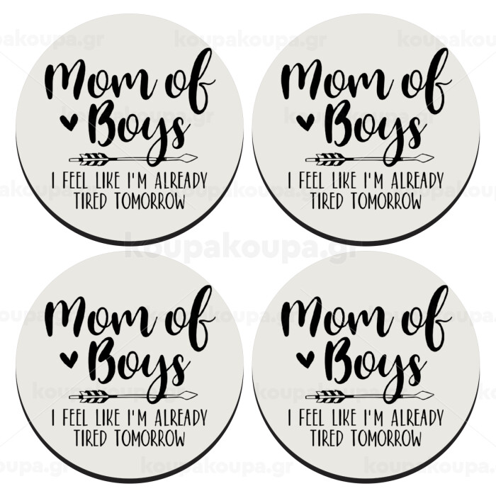 Mom of boys i feel like im already tired tomorrow, ΣΕΤ 4 Σουβέρ ξύλινα στρογγυλά (9cm)