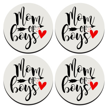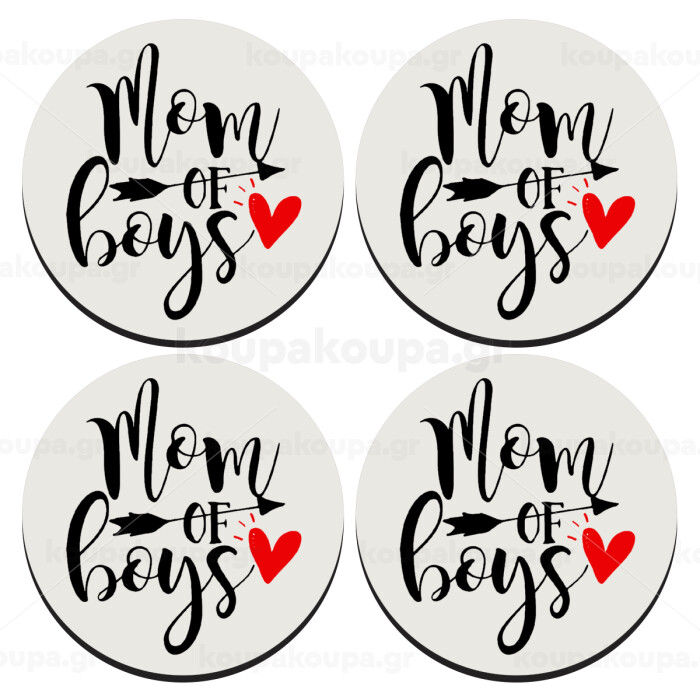 Mom of boys, ΣΕΤ 4 Σουβέρ ξύλινα στρογγυλά (9cm)