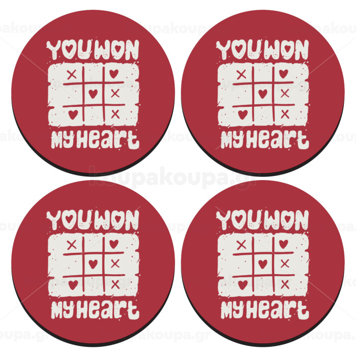 Τρίλιζα you won my heart, ΣΕΤ 4 Σουβέρ ξύλινα στρογγυλά (9cm)