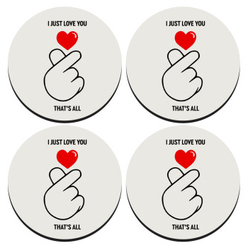 I just love you, that's all., ΣΕΤ 4 Σουβέρ ξύλινα στρογγυλά (9cm)