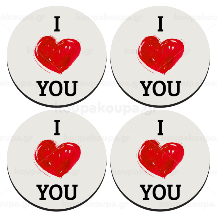 I Love You, ΣΕΤ 4 Σουβέρ ξύλινα στρογγυλά (9cm)