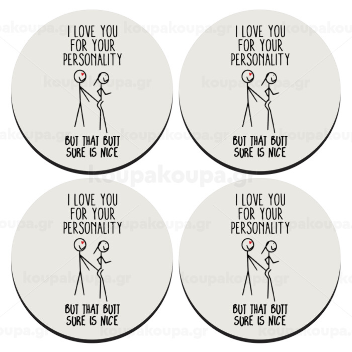 I Love you for your personality, ΣΕΤ 4 Σουβέρ ξύλινα στρογγυλά (9cm)