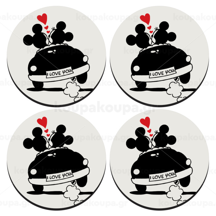 Love Car, ΣΕΤ 4 Σουβέρ ξύλινα στρογγυλά (9cm)