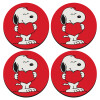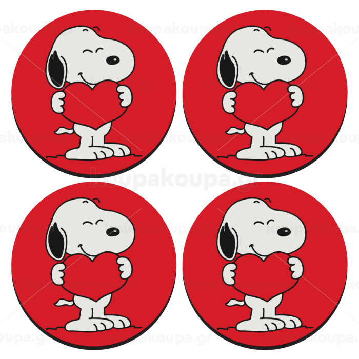 Snoopy takemy heart, ΣΕΤ 4 Σουβέρ ξύλινα στρογγυλά (9cm)