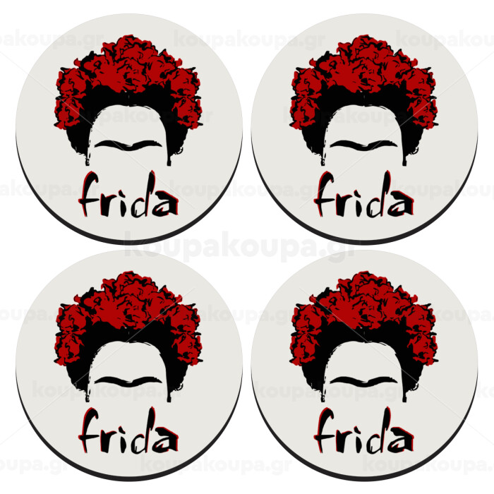 Frida, ΣΕΤ 4 Σουβέρ ξύλινα στρογγυλά (9cm)
