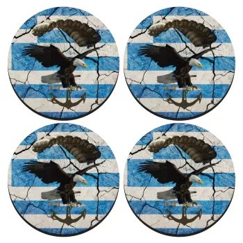 Hellas army αετός, ΣΕΤ 4 Σουβέρ ξύλινα στρογγυλά (9cm)