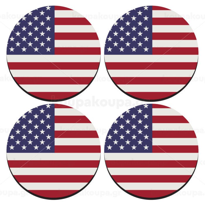 Σημαία Αμερικής, ΣΕΤ 4 Σουβέρ ξύλινα στρογγυλά (9cm)