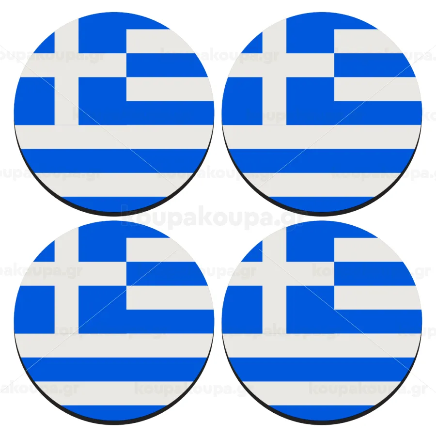 Greece flag, ΣΕΤ 4 Σουβέρ ξύλινα στρογγυλά (9cm)