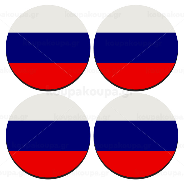 Russia flag, ΣΕΤ 4 Σουβέρ ξύλινα στρογγυλά (9cm)