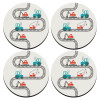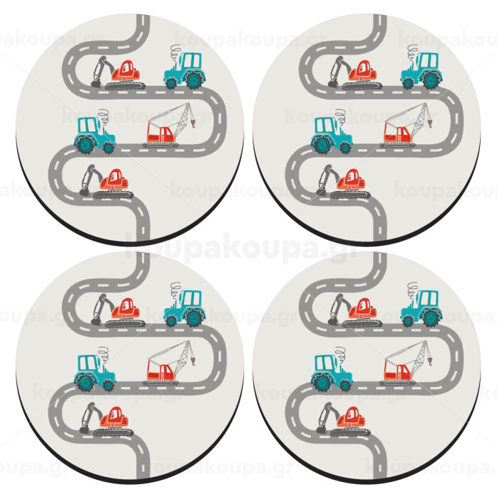 Αμαξάκια στον δρόμο, ΣΕΤ 4 Σουβέρ ξύλινα στρογγυλά (9cm)