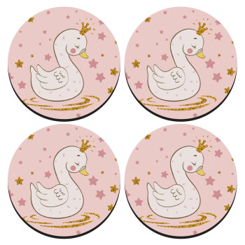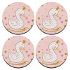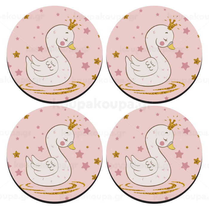 Κύκνος με στέμα, ΣΕΤ 4 Σουβέρ ξύλινα στρογγυλά (9cm)