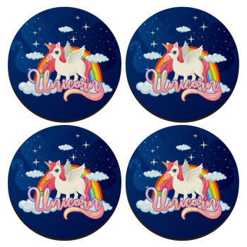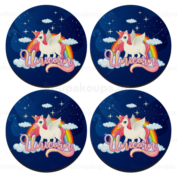 Μονόκερος, ΣΕΤ 4 Σουβέρ ξύλινα στρογγυλά (9cm)