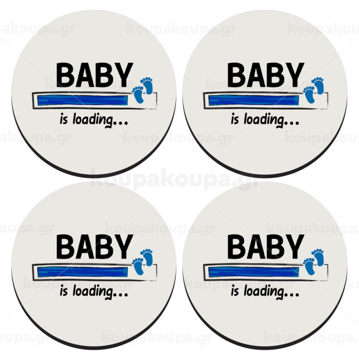 Baby is Loading BOY, ΣΕΤ 4 Σουβέρ ξύλινα στρογγυλά (9cm)