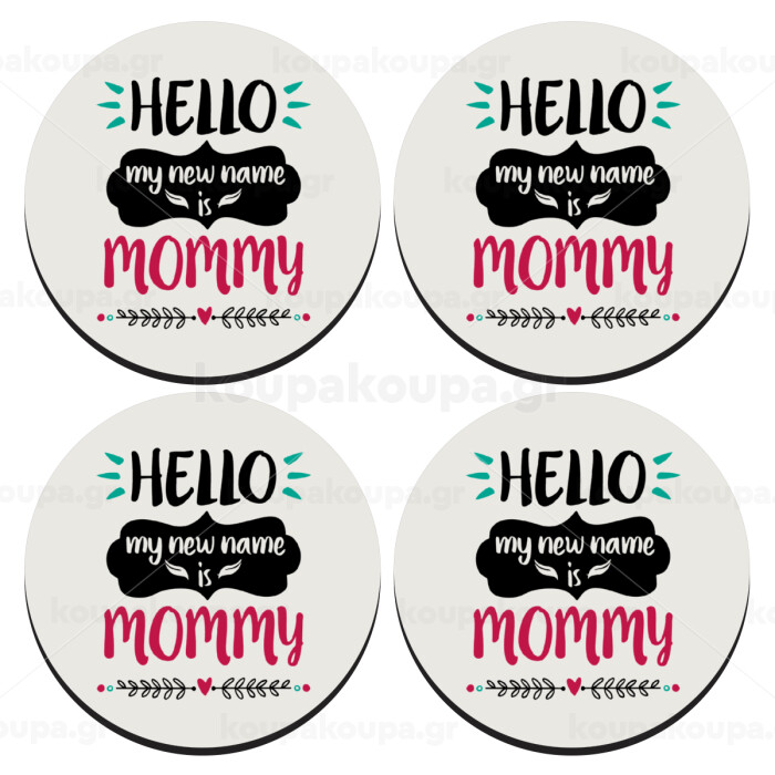 Hello, my new name is Mommy, ΣΕΤ 4 Σουβέρ ξύλινα στρογγυλά (9cm)