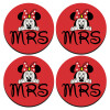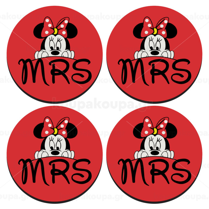 Minnie Mrs, ΣΕΤ 4 Σουβέρ ξύλινα στρογγυλά (9cm)
