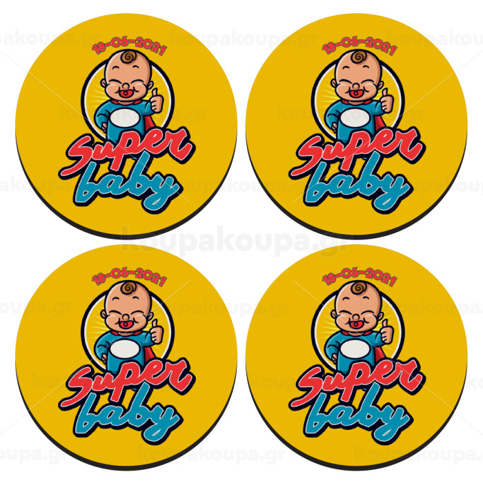 Super baby., ΣΕΤ 4 Σουβέρ ξύλινα στρογγυλά (9cm)