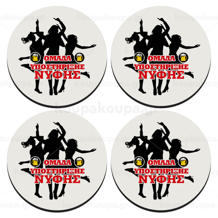 Bachelor Ομάδα υποστήριξης Νύφης, ΣΕΤ 4 Σουβέρ ξύλινα στρογγυλά (9cm)
