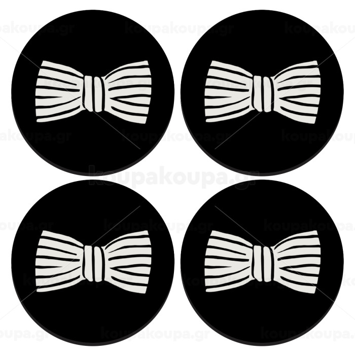Bow tie, ΣΕΤ 4 Σουβέρ ξύλινα στρογγυλά (9cm)