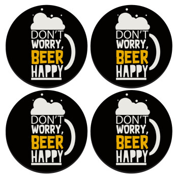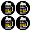 Don't worry BEER Happy, ΣΕΤ 4 Σουβέρ ξύλινα στρογγυλά (9cm)