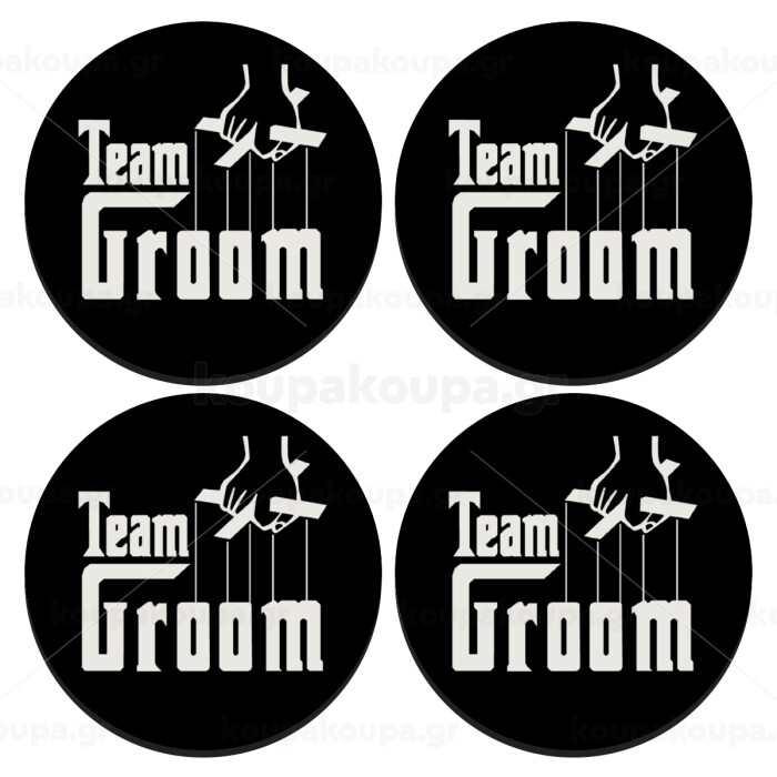 Team Groom, ΣΕΤ 4 Σουβέρ ξύλινα στρογγυλά (9cm)