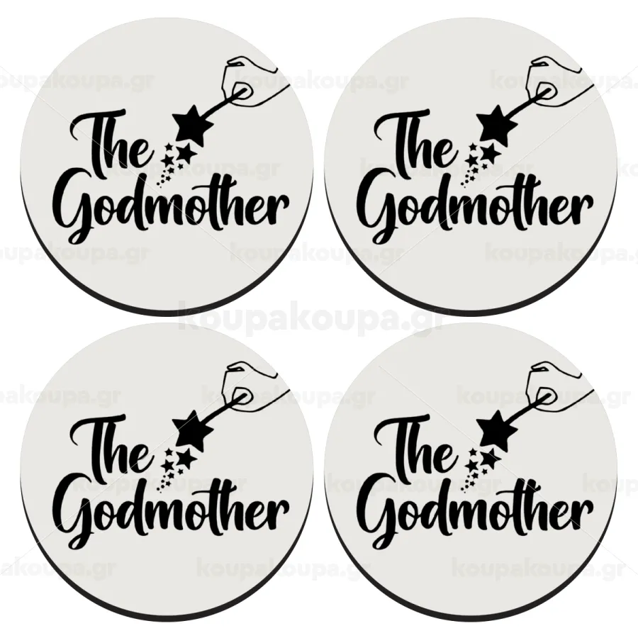 Fairy God Mother, ΣΕΤ 4 Σουβέρ ξύλινα στρογγυλά (9cm)