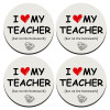 i love my teacher but no the homework, ΣΕΤ 4 Σουβέρ ξύλινα στρογγυλά (9cm)