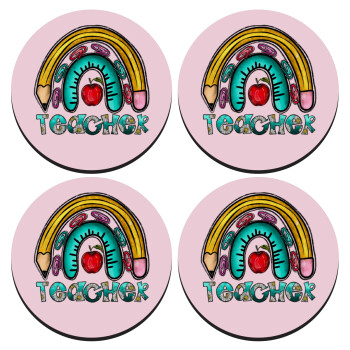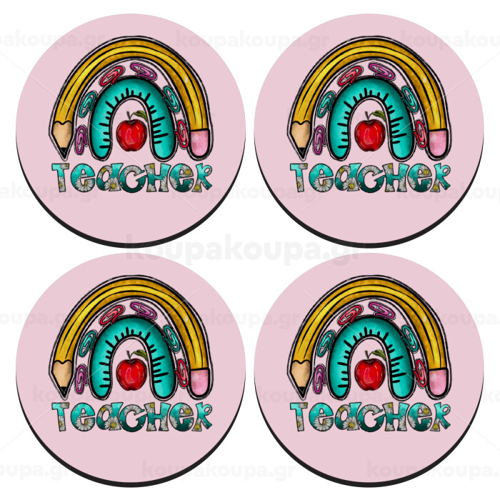 Teacher, ΣΕΤ 4 Σουβέρ ξύλινα στρογγυλά (9cm)