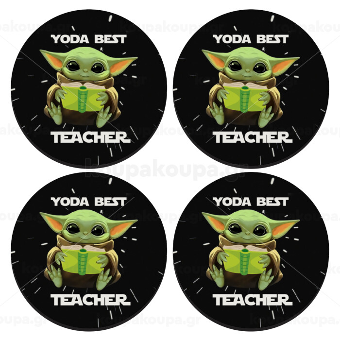 Yoda Best Teacher, ΣΕΤ 4 Σουβέρ ξύλινα στρογγυλά (9cm)
