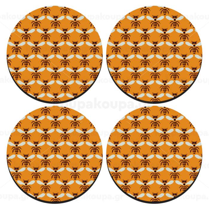 Μελισσούλες, ΣΕΤ 4 Σουβέρ ξύλινα στρογγυλά (9cm)