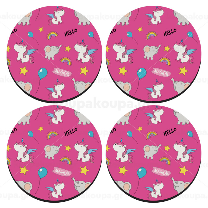 Happy Clouds Doodle, ΣΕΤ 4 Σουβέρ ξύλινα στρογγυλά (9cm)