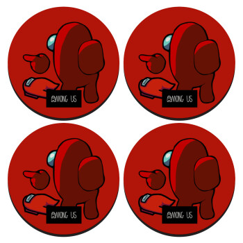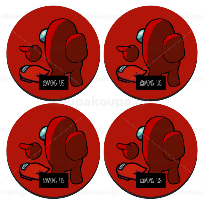 Among US i am impostor..., ΣΕΤ 4 Σουβέρ ξύλινα στρογγυλά (9cm)