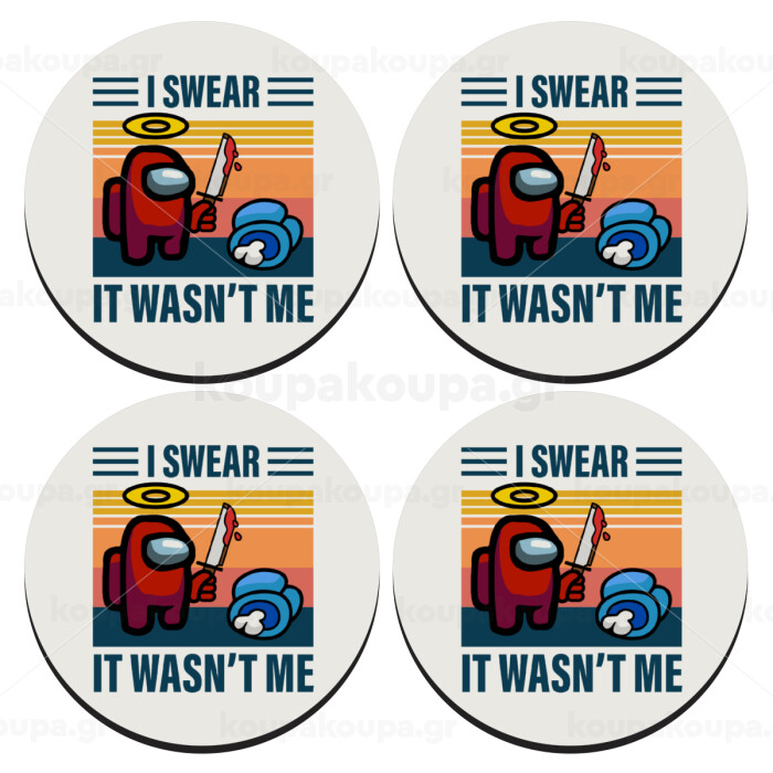 Among us, I swear it wasn't me, ΣΕΤ 4 Σουβέρ ξύλινα στρογγυλά (9cm)