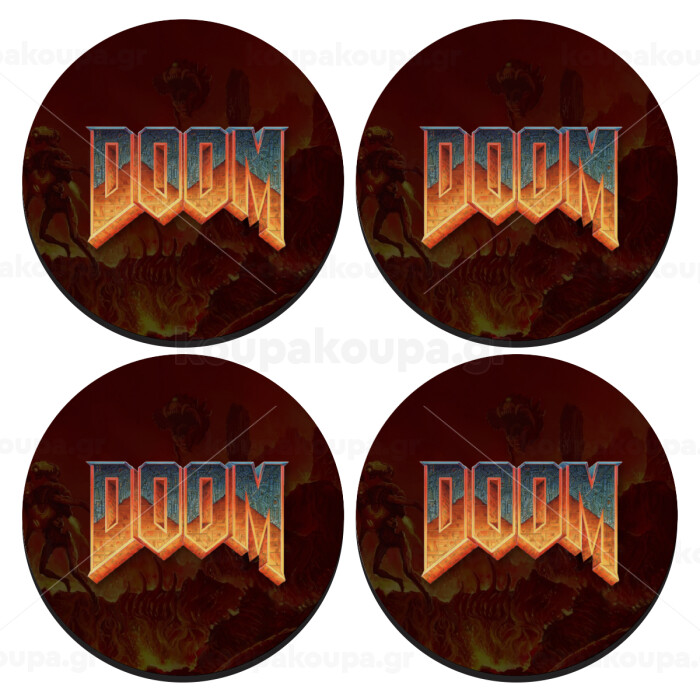 DOOM, ΣΕΤ 4 Σουβέρ ξύλινα στρογγυλά (9cm)