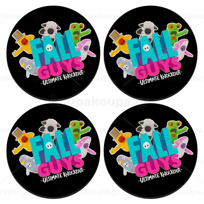 FALL GUYS, ΣΕΤ 4 Σουβέρ ξύλινα στρογγυλά (9cm)